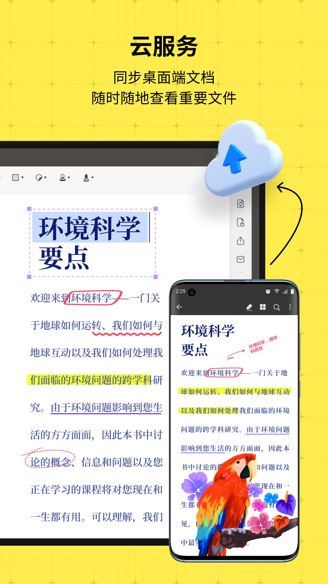 丝滑的阅读体验和轻松简单的编辑注释功能备受用户青睐,云同步功能可实现全平台同步文档,随时随地皆可学习或办公。