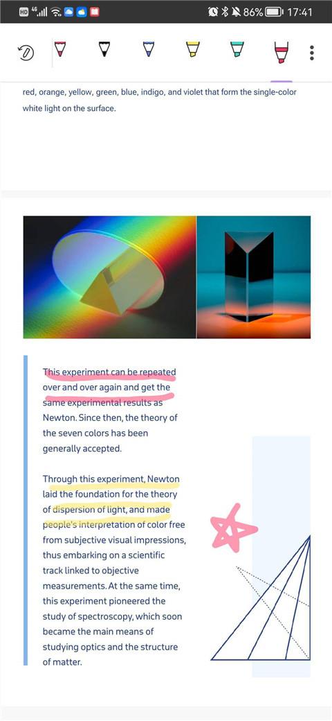 3、点击“高亮”选项,选择并将您想要高亮的文本,您还可以长按选项以选择画笔颜色。