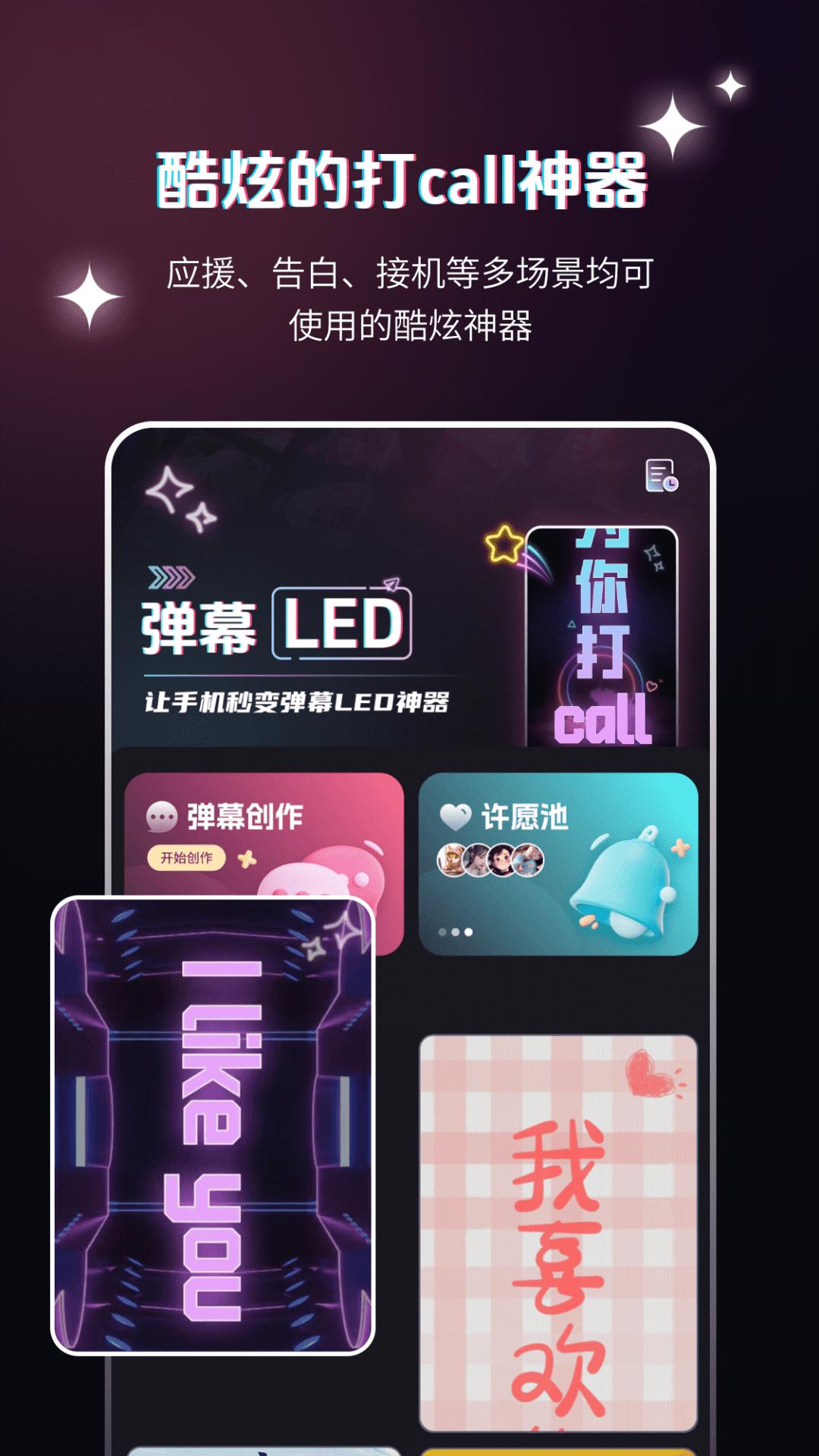 不管是参加演唱会、酒吧派对、生日聚会、机场接机还是搭讪表白,只需要在手机上输入你想要展示的文字,举起手机,就能瞬间吸引大家的注意!这款弹幕举牌神器专为没有灯牌的汉子、妹子设计,让你的手机瞬间变身移动的弹幕LED发射器!还可以轻松创作AE特效举牌视频,字幕添加一站式创作;美女举牌、装X现场、表白专用、节日祝福等模板应有尽有,随心创作。