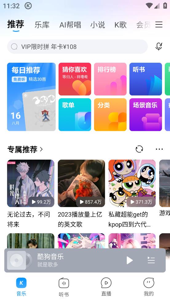 酷狗音乐32位版本适合较早面世的手机设备使用,由于老手机和旧手机的配置较低,该版本具备内存占用小,界面简洁,运行稳定流畅的特点,千万高品质正版曲库随心听,歌多,音效多,音质好,有需要的朋友赶紧下载安装体验吧。