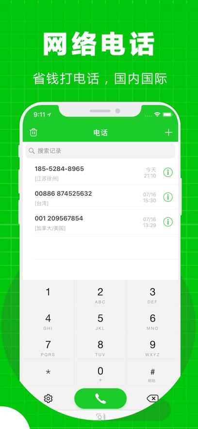 可拨打国内和全球200国家地区电话,对方不需要安装!