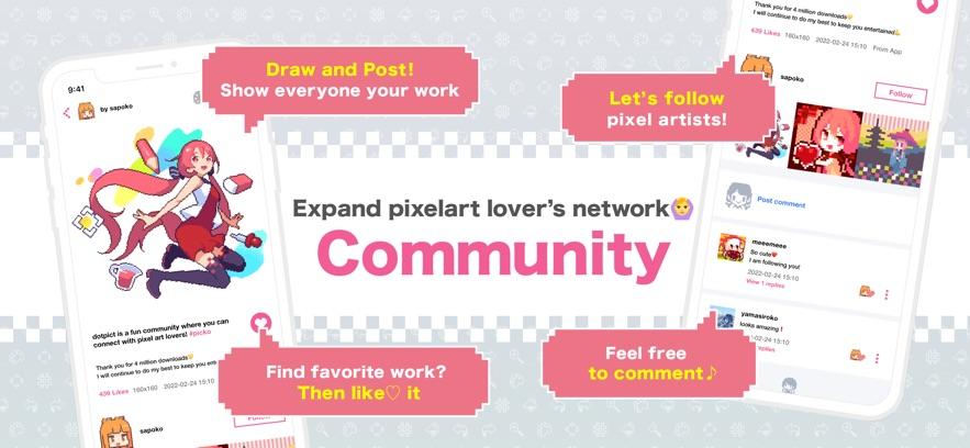 1、轻松地与SNS服务共享,向所有人介绍像素艺术