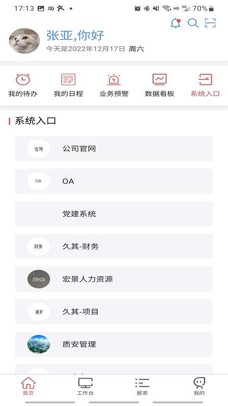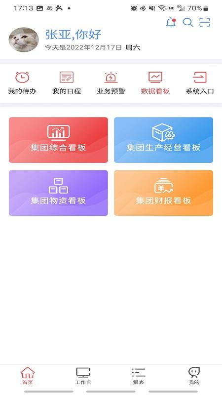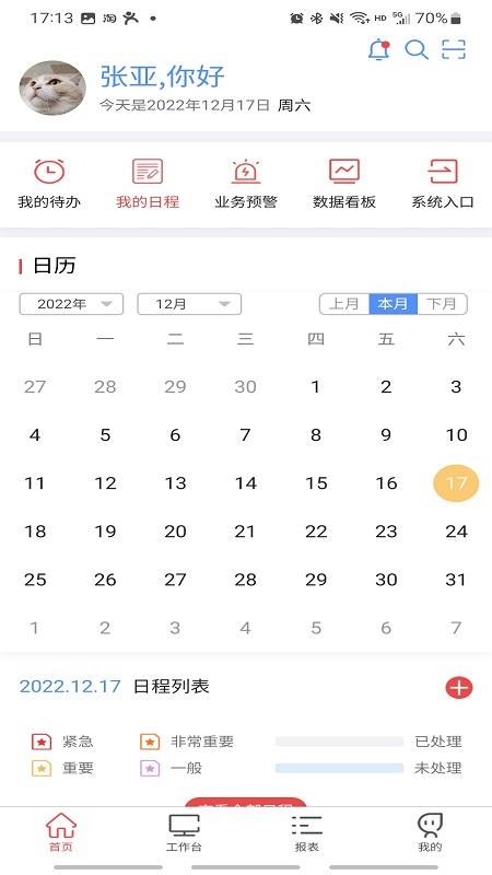 本应用主要包含四个功能:待办集成、日程管理、报表管理、看板。
