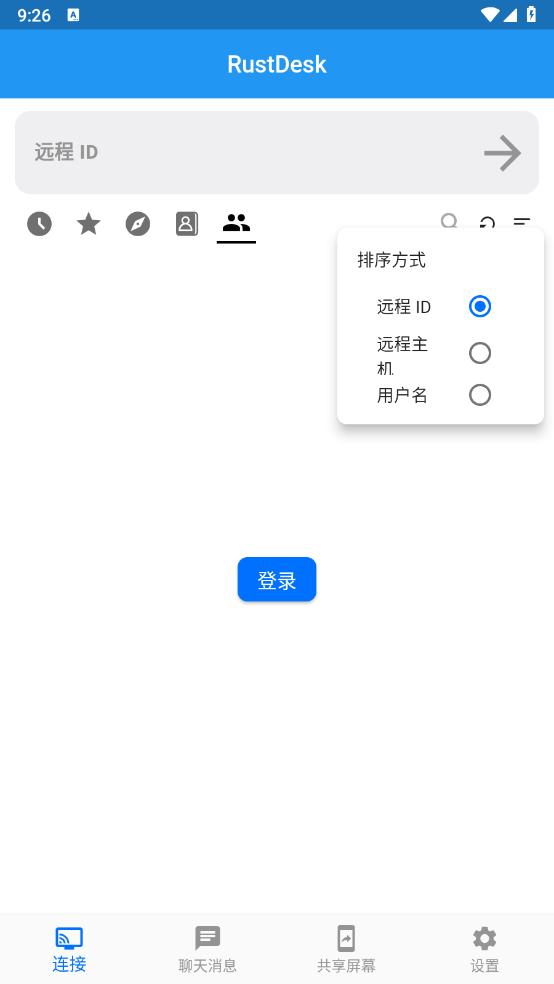 1、在本站下载安装并打开RustDesk,进入软件进行登陆。