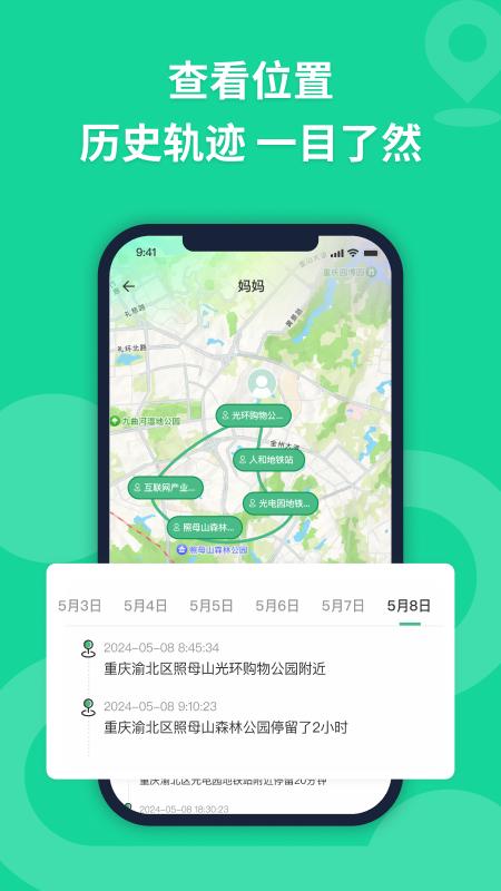 1.实时定位:提供精确的实时位置信息,帮助用户即时了解亲友所在位置。