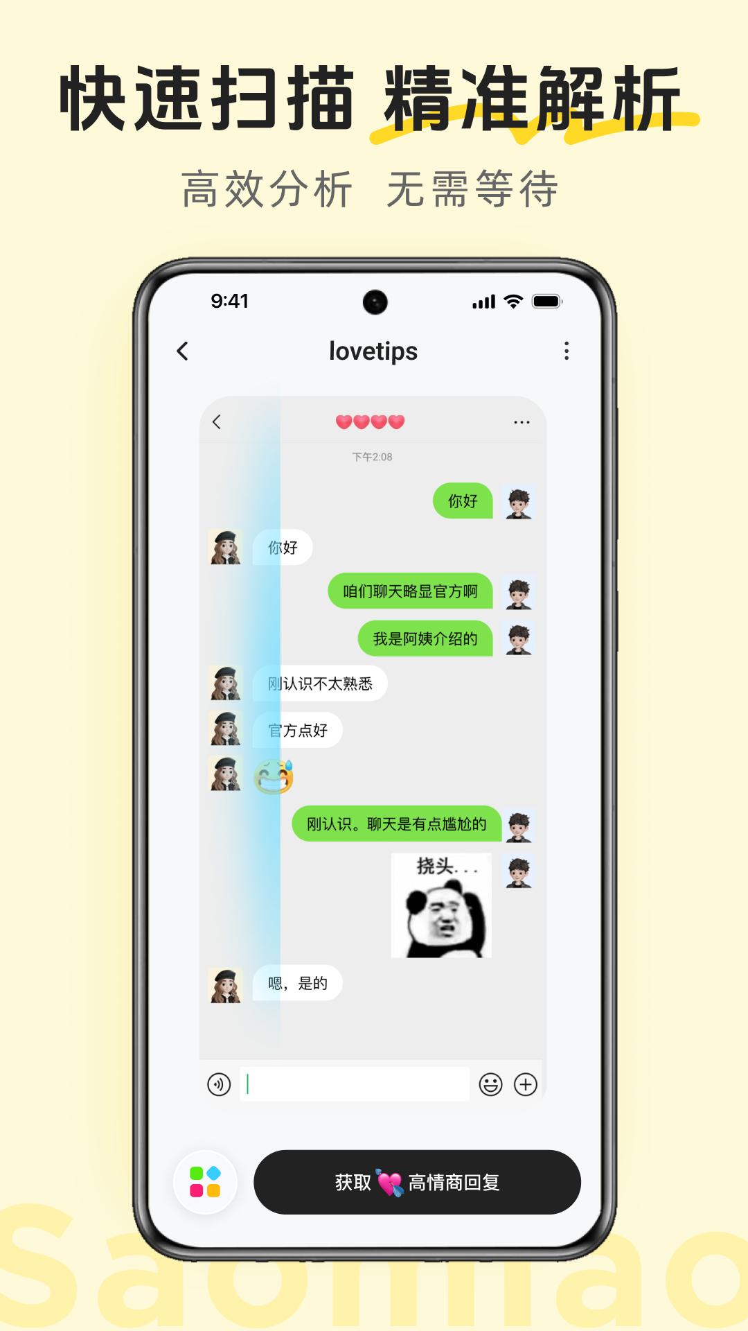 - 截图识别:通过上传聊天截图能够快速识别对话内容,分析匹配最佳回复。