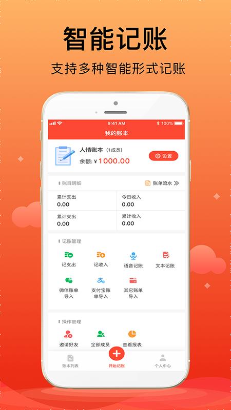 1、在线创建新账本,详细记录个人的每一笔消费支出,实现财务的精细化管理;