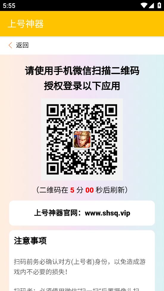 扫码前务必确认对方(上号者)身份,以免造成游戏内不必要的损失!