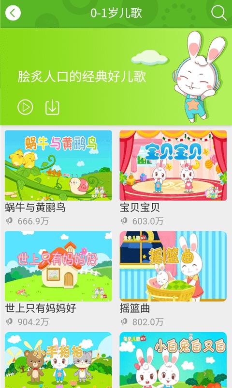 兔兔儿歌最新版,科学划分适龄儿歌,适合0~6岁小朋友使用!