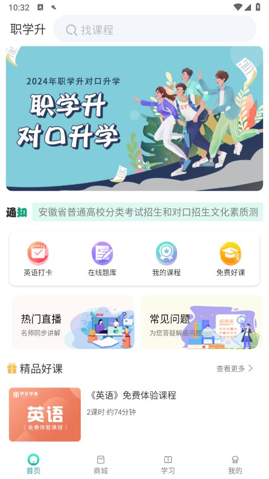 职学升教育是一款非常好用的学习平台软件,软件内置拥有超多学习资源供大家学习参考,而且还为用户提供了直播课程可供用户免费观看学习,有任何的问题和难题都可以在直播间向老师提问,都会给你一一做出解答。软件内置大家还可以将错题汇总,到后面大家就可以针对错题来进行复习。