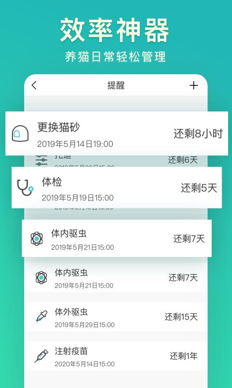 · 提醒:设定喂食、疫苗接种、生日等重要提醒,再也不怕忘记重要的事件和日程啦~