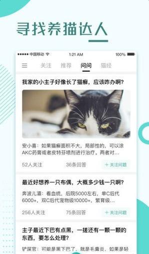 问题咨询:无论您遇到什么样的养猫问题,都可以向养猫达人咨询;