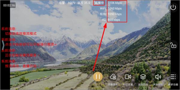 5、点击【开始直播】后,根据使用的网络显示对应网速,不使用则隐藏。