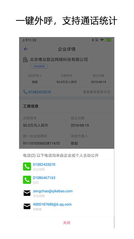 企业详情查看功能,可以让用户快速浏览企业的详细情况;
