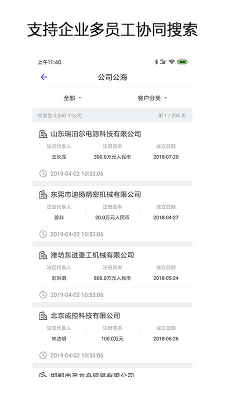 企搜客APP,是一款功能强大的拓客软件,该款软件采用了互联网大数据设计技术,该款软件能够让用户一键搜索企业、产品等信息,只需用户输入企业的名称、产品名称和营业范围,就能够极速搜索出需要的企业信息,支持用户查看企业的注册资金、成立年限、经营范围等数据。该款APP不但为用户提供企业查询服务功能,而且还为企业提供了多种强大的办公服务功能,帮助企业提升办公的效率。该平台能够让用户挖掘潜在的商机,可以根据用户提供的描述特征,结合人工智能以及大数据,为企业进行商机推荐。
