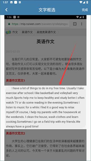 4、拉取识别内容的方框,选择你要翻译的内容,然后点击右上角的【完成】按钮;