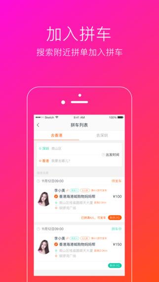 [加入拼车] 查看附近的拼车列表,加入拼车。