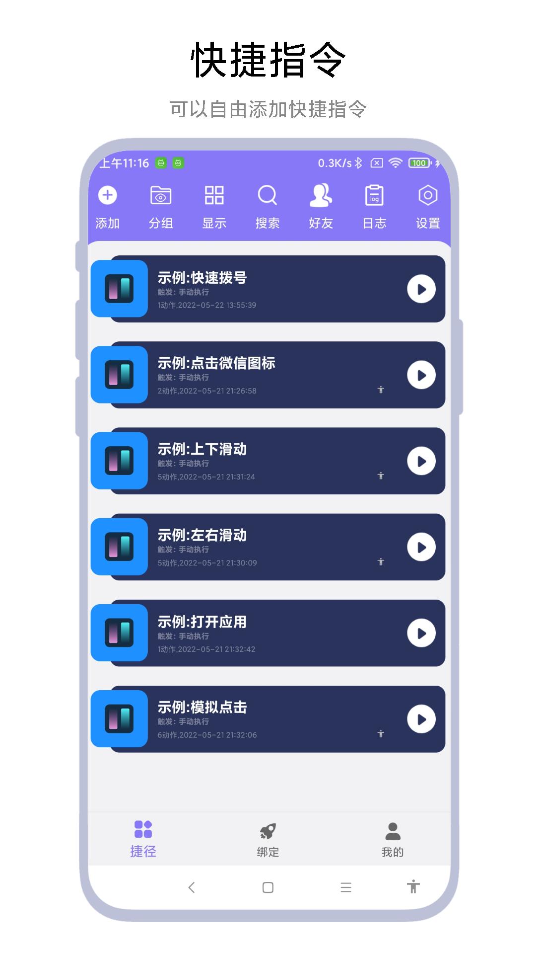 自动触发:手动触发、语音触发、定时触发、悬浮球触发、发通知触发;