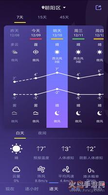 中国天气app覆盖全球300多个城市。用户通过输入城市名称可以清楚地查看当天和未来45天的天气,软件可以根据天气变化为用户提供每小时48小时的预报。