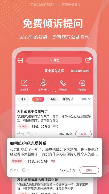 Call得助app是一款专业的心理咨询平台,它专注于为校园学生提供心理咨询服务,你可以在这里向学长学姐倾诉心事,让他们为你分析爱情、事业、学业和情感等方面的问题。线上的情感测试有很多,你可以根据需求进行测试。