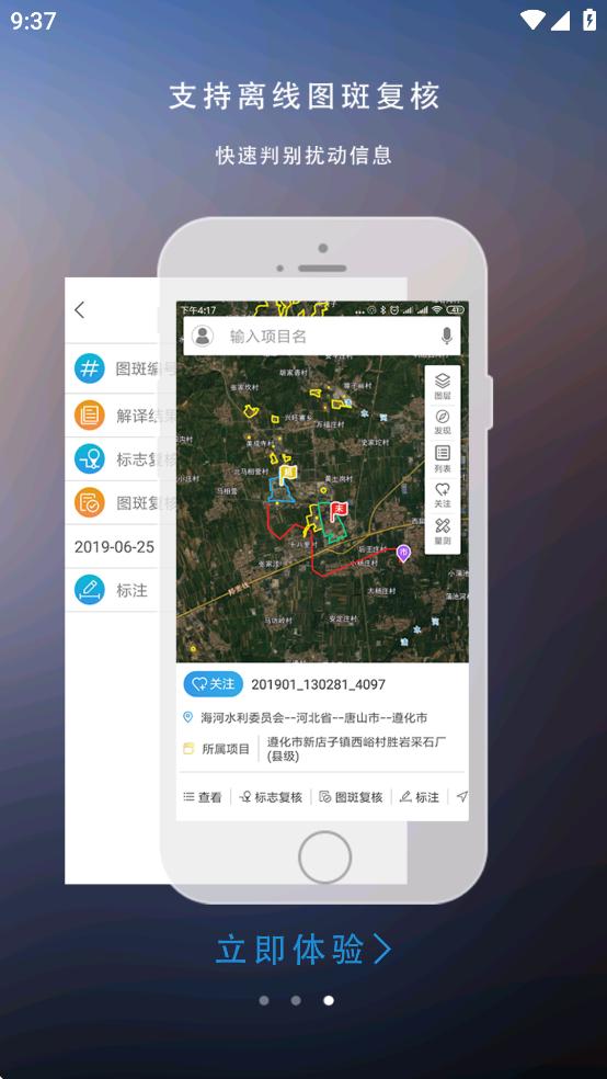 是水利部水土保持监测中心组织北京地拓科技发展有限公司开发,用于生产建设项目水土保持区域地表扰动合规性外业现场复核工作的移动应用产品。