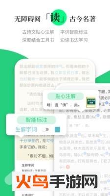 2.古今名著,古诗文内容非常的玩转,所以需要智能的工具在旁边辅助阅读。