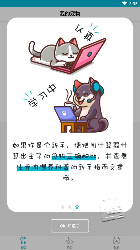 2.专为宠物设计的喂食计算器,可为猫狗提供原始骨骼计算。