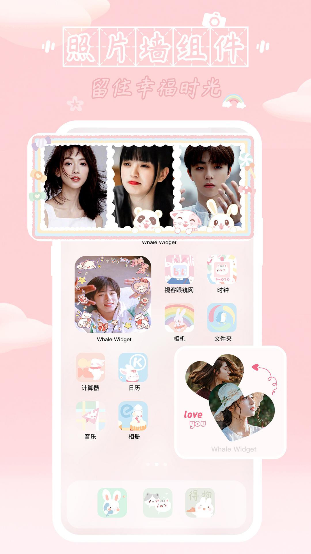 鲸鱼小组件手机桌面主题美化,提供上百种桌面小组件、图标更换。海量桌面小组件,自定义桌面布局。X面板、趣味组件、照片墙、纪念日、倒数日、日历、时间、天气、清单、捷径等多功能,多样式,不同尺寸小组件任你挑选。全放方位自定义桌面,组件、图标自由搭配,打造您的个性化桌面。