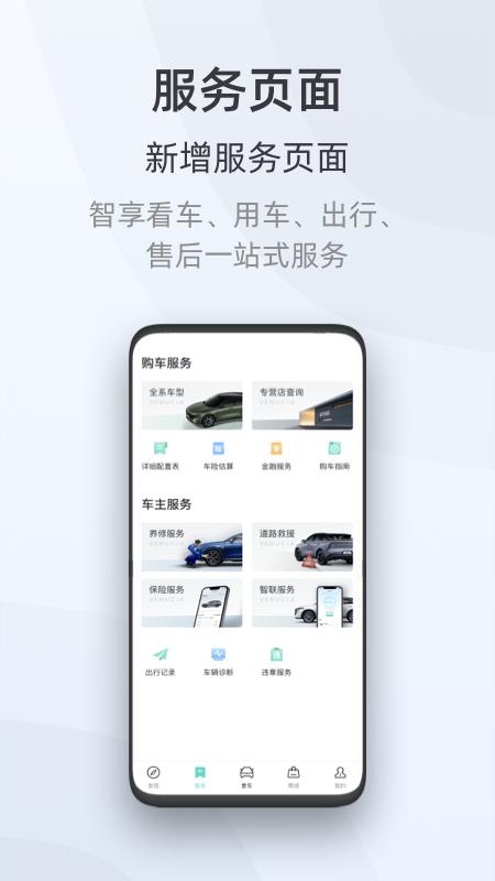 2、【服务页面】新增服务页面,智享看车、用车、出行、售后一站式服务;
