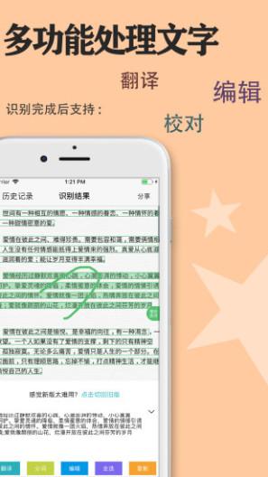 2、多功能处理文字:识别完成后支持翻译、编辑、校对