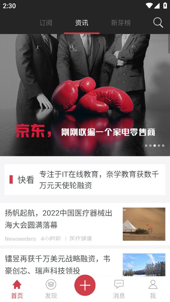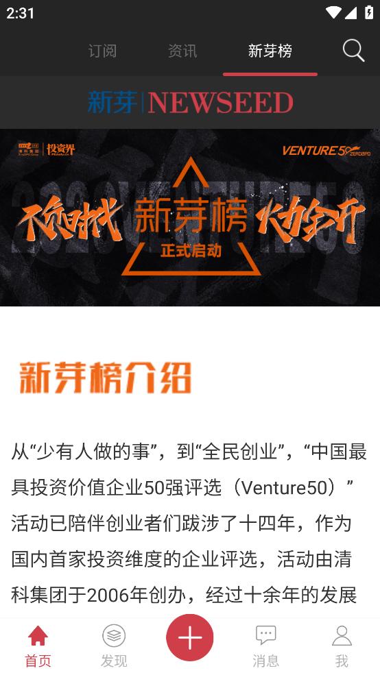 2、在首页中查看各种类型的创业资讯内容,根据自己的需求选择不同资讯标签进行订阅