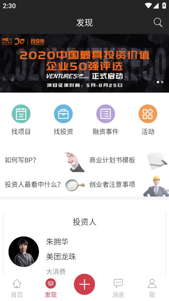 3、应用中有大量的投资人,用户可以在这里寻找更多投资人为自己的项目融资;