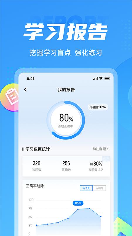 ·清晰简洁的页面设计,海量的题库,完美的满足更多用户的学习需求。