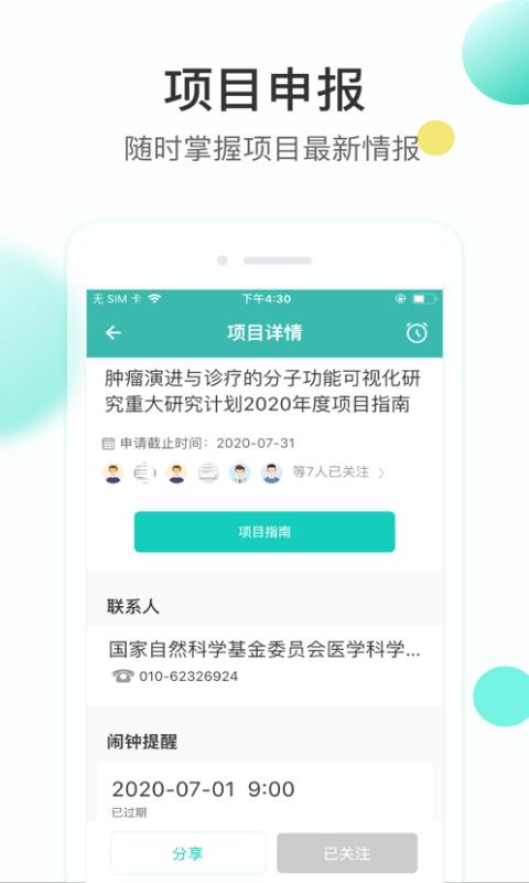 汇总全国科技项目申报信息,并通过智能闹铃、多段提醒方式持续跟踪课题项目进展,您不必担心会错过重要的项目。
