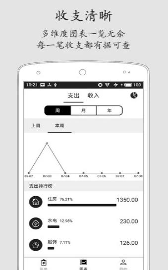 1、快速的一键记账,还有账目分类,让你的账单清清楚楚。