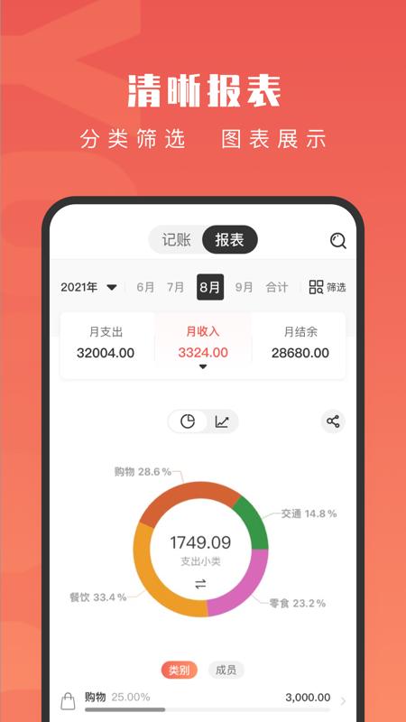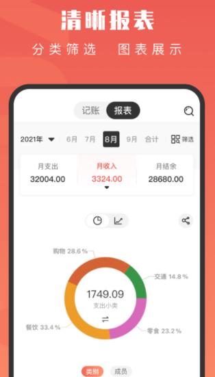 随时随地记账,分类图表,秒记流水;