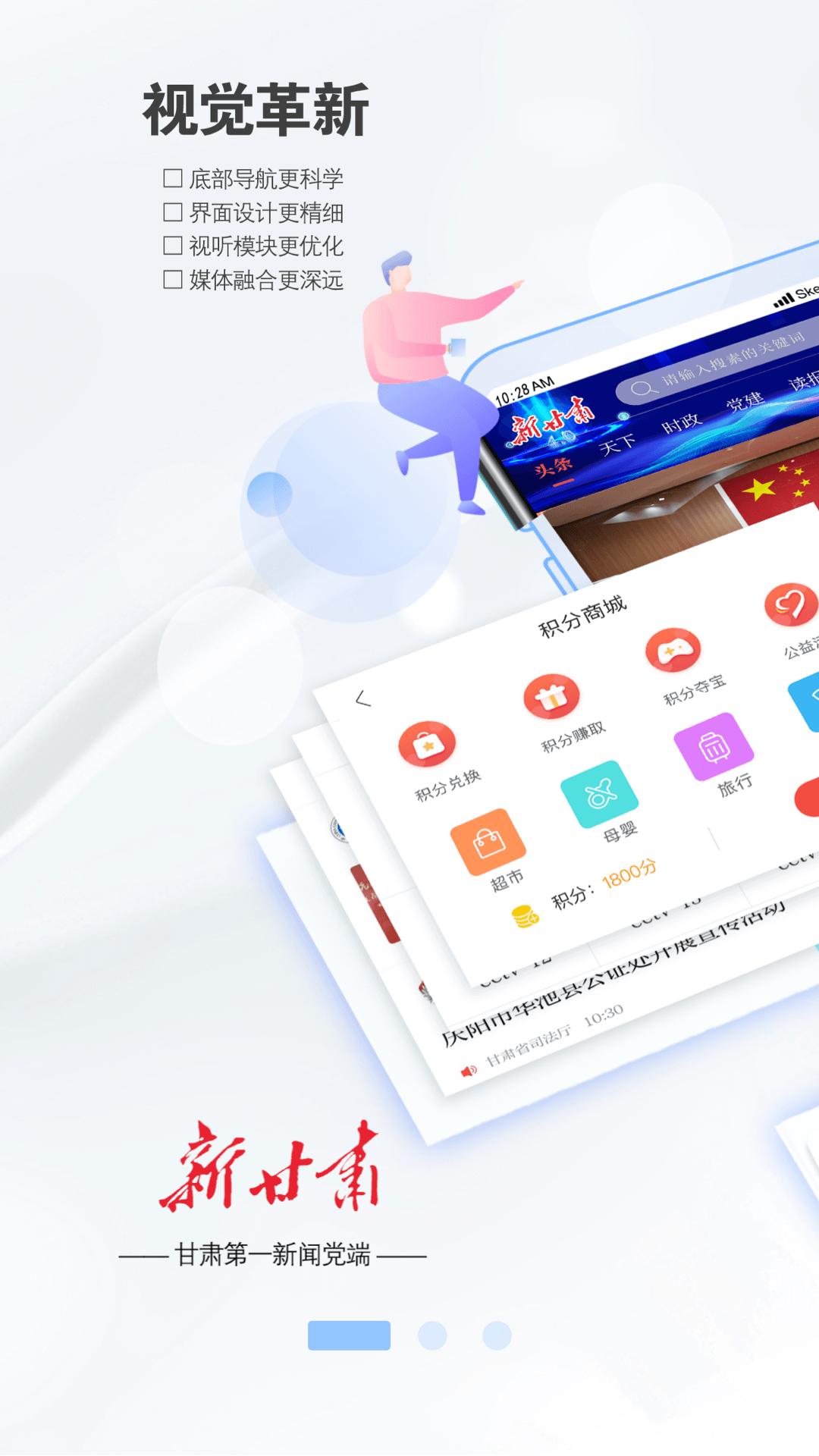 新甘肃客户端是宣传省委省政府重要政策的主平台、发布甘肃信息的主窗口。新甘肃客户端全天候生产与播发原创新闻、政务信息和音视频节目,第一时间传播甘肃新闻与社会民生动态,14个市州频道和86个县区栏目全方位全时段提供甘肃全省的地方新闻和生活资讯,是用户了解甘肃发展大势的移动传媒。视频直播和网络电台突出独家、尊重原创、传递思想,为用户提供贴心政务及生活服务。
