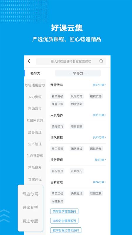这款软件是你职业生涯道路中必不可缺少的一款教育学习软件哦,这款软件能够给到你非常不错的企业教育建议和一些实用的学习内容的,大家也都是可以在这里获取到最新的一些教育培训实学习内容哦,在线就能够为你展示到很多你想要的学习知识。