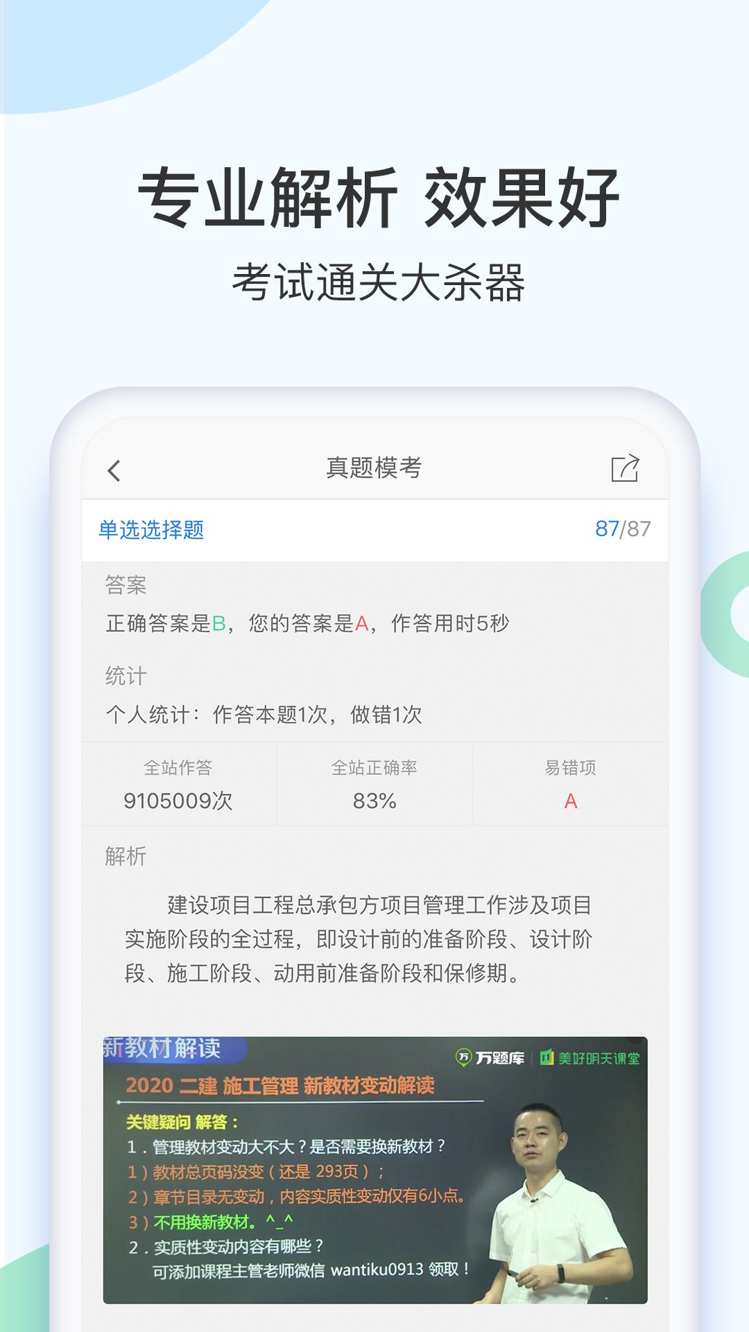 二级建造师通关必备神器!二级建造师免费题库、视频、直播精品课,你需要的备考资源这里全都有,备受二级建造师考试用户认可的工程类学习APP,助力考生快速通过二建考试,备考二级建造师,认准万题库!
