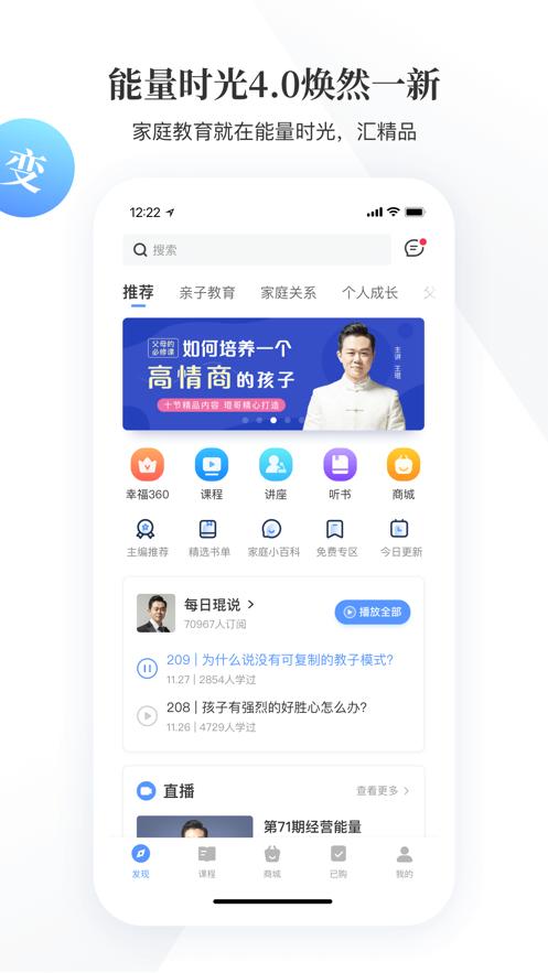 能量时光,中国家庭教育内容运营商,家庭当中遇到的所有问题都可以在这里找到答案,碎片化时间,随时随地学习系统化家庭教育专业知识。