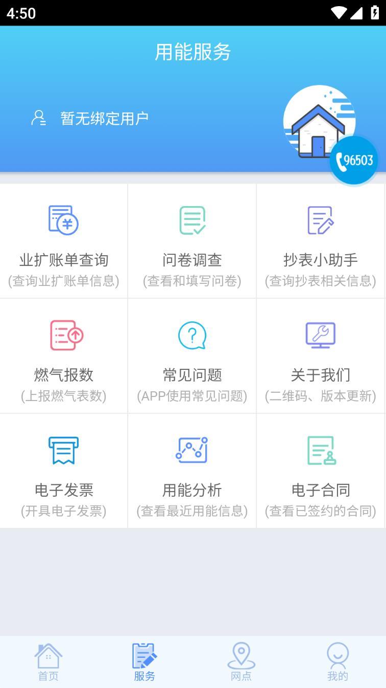登录后,在首页点击“用户绑定”按钮,进入绑定户号页面,输入客户编号,选择验证条件(手机号、身份证号、组织机构代码),输入验证内容、手机号和获取的验证码,然后点击“绑定”按钮即可。