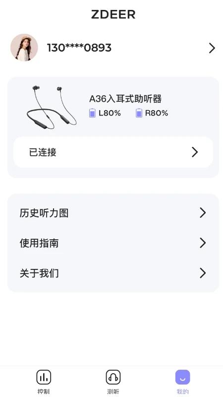 在我的界面,可以登录、查看、修改账号资料,查看历史听力图、使用指南等。