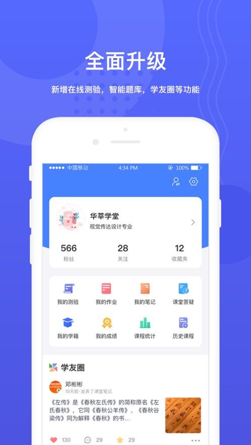 华莘学堂app是一款在线教育平台,平台拥有丰富的课程学习内容,可以直播学习,点播学习,互动交流等等,是用户学习的掌上好帮手,欢迎前来下载使用。