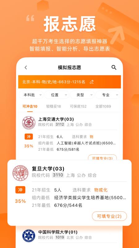 掌上高考2024高考志愿填报平台是一款由中教智网(北京)信息技术有限公司针对2024高考生打造的志愿填报软件,帮助您轻松填报志愿,帮助考生规避报考掉档的风险,让考生的每一分都发挥最大的价值。