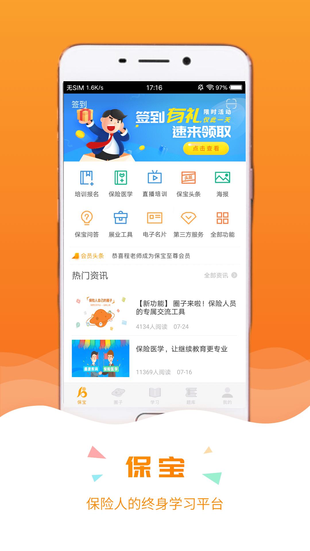 保宝app是一款保险从业人员手机上的学习软件,通过这里可以学到很多的保险专业知识,你可以随时在手机上预约课程,然后进行学习,同时这里面还有很多帮助你工作的工具,可以节省你的扩展客户时间,帮助你成长为更好的销售!