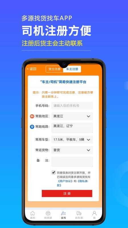 多源找货找车app是一款货运类的软件,多源找货找车app可为用户实时提供优质的货运信息,让你可以随时找货找车。