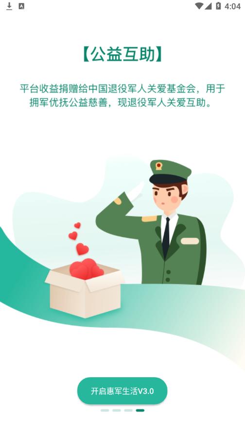 4、惠军平台利润捐赠给中国退役军人关爱基金会、真心实意帮助军人。
