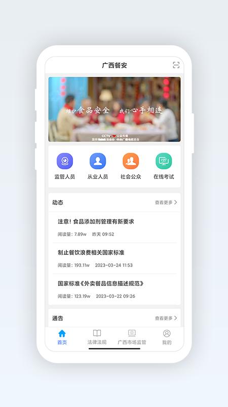 广西餐安app是专为广西省餐饮从业人员和监管人员制作,软件拥有在线学习,在线考试等等功能服务,可以帮助更好的食品安全,需要的朋友欢迎前来下载使用。