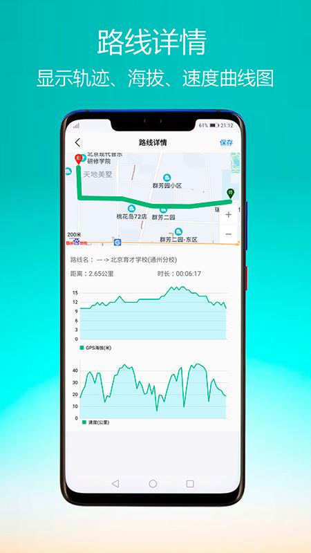 2.后台记录:切换到后台仍可以不间断记录轨迹、测量海拔、速度。