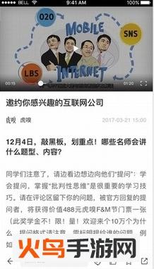 虎嗅app是一款用户可参与的商业资讯与观点交流平台。这个资讯及观点平台的核心,是关注互联网与移动互联网一系列明星公司(包括公众公司与创业型企业)的起落轨迹、产业潮汐的动力与趋势,以及